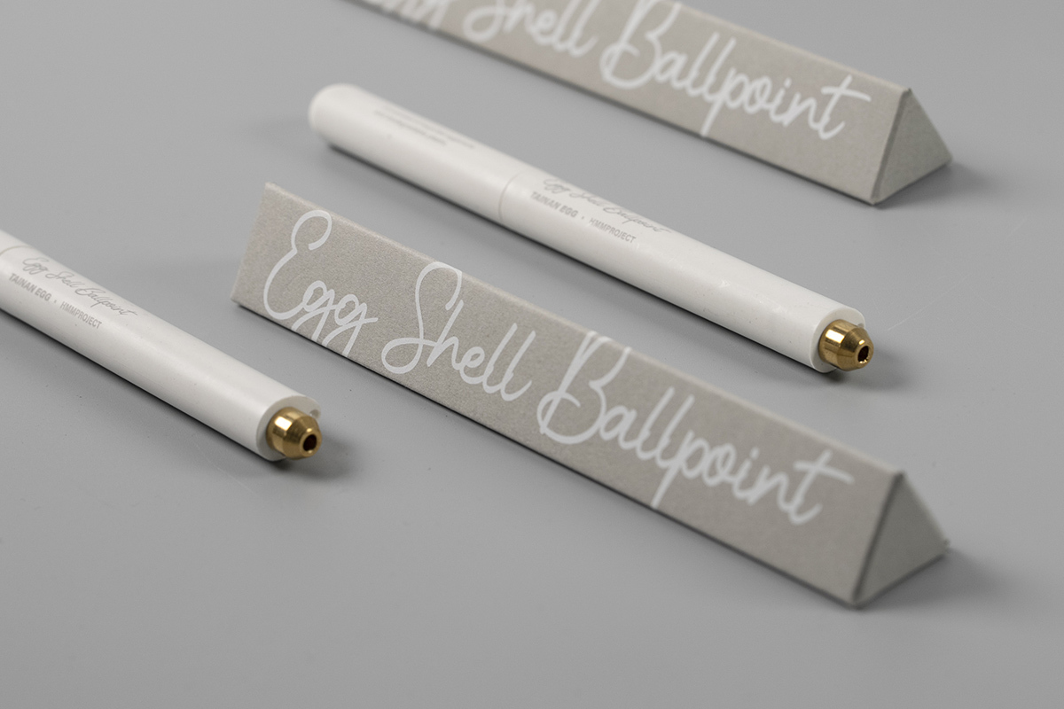 蛋殼筆對地球友善,也對五感友善。視覺上,將生物意象轉化為極簡語彙,蛋形筆身搭配亮色調的黃銅筆頭,宛如破殼而出的蛋黃,不僅饒富趣味,更象徵著新生的工藝靈魂。