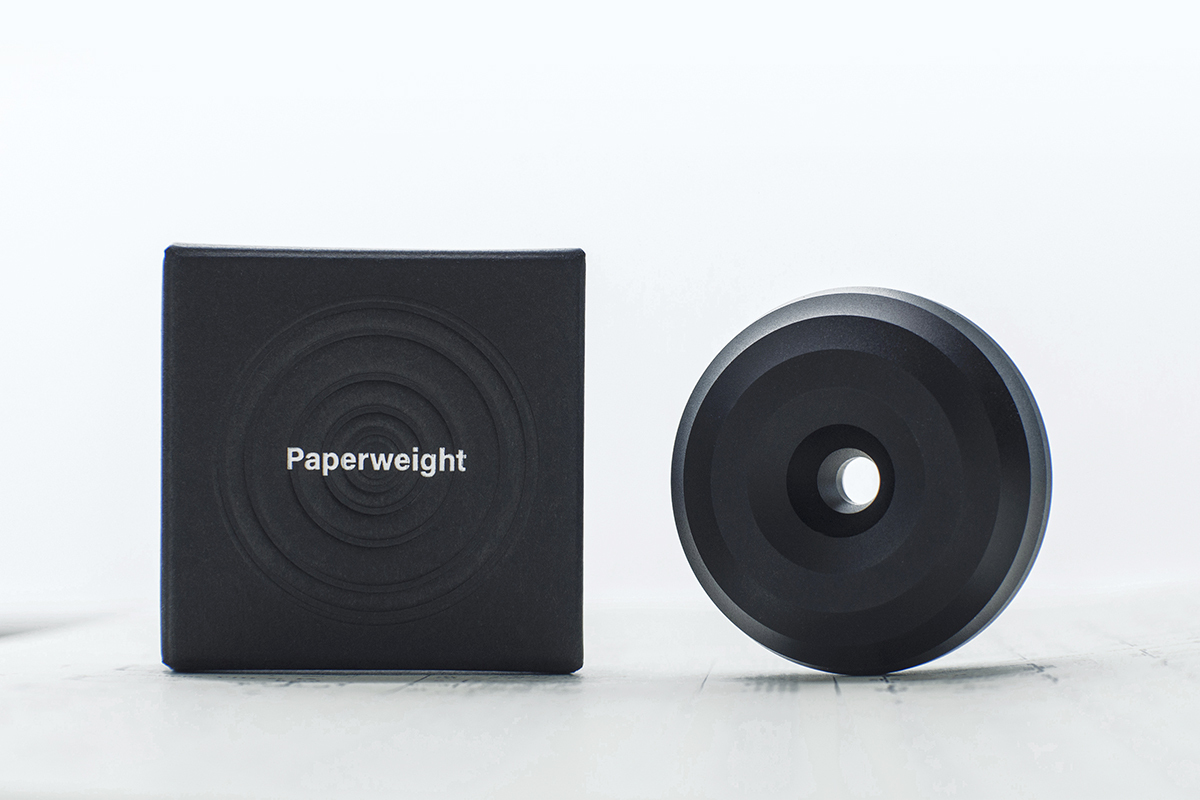 紙鎮 Paperweight 整體採用全鋁合金實心精密切削,手感沈穩紮實。